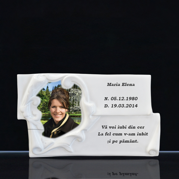 Adaugă o notă de eleganță și personalizare monumentului funerar cu Fotoceramica Funerară Papirus Barocco de la ARTFUNERAR MANUFACTURING. Acest produs de înaltă calitate este realizat cu atenție la detalii, utilizând tehnologie avansată pentru a asigura o durabilitate excelentă și o reproducere fidelă a imaginii. Fotoceramica în stil baroc adaugă un aspect artistic și sofisticat, păstrând vie amintirea celor dragi într-un mod demn și respectuos. Potrivit pentru orice tip de monument funerar, Papirus Barocco este rezistent la intemperii și menține culorile vii în timp.